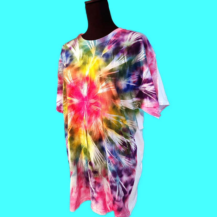 One of a kind Tye Dye Shirt featuring long sleeves with a colorful design.