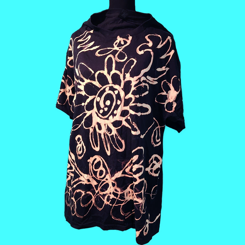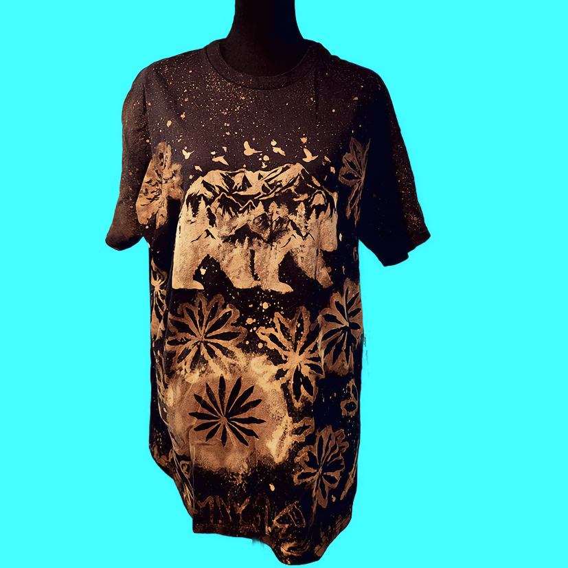 Bear and Flowers Bleach Dyed T-Shirt